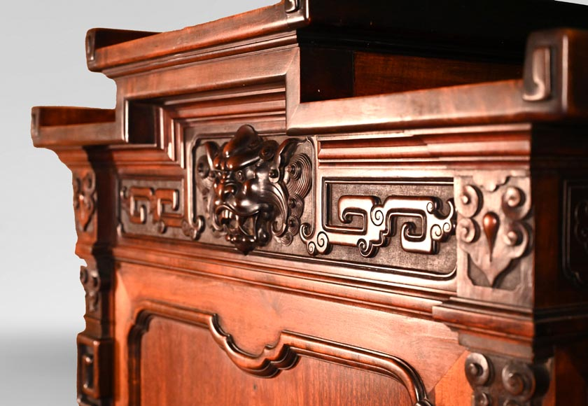 Ручне різьблення відзначалося надзвичайною деталізацією. Майстер застосовував як об’ємні фігурні композиції, так і ажурні openwork-панелі, що нагадували східні решітки. Особливого шарму надавали декоративні вершини у формі пагод чи фігур драконів, які завершували композицію.