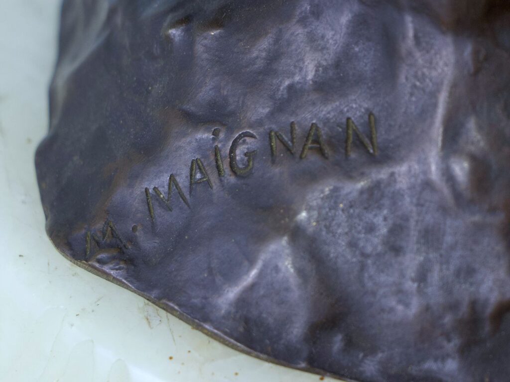 Бронзова антикварна статуетка авторства художника і скульптора Maurice Magnan (1872-1946). Скульптурна композиція «Бідняк», створена в імпресіоністичній манері, зображує чоловіка, що заснув, сидячи на лавці. Робота виконана в якості етюду та покликана зобразити швидкоплинний момент життя та спостереження навколишнього світу. Скульптура відлита через індивідуальну воскову форму, що дозволяє зберегти деталі доволі чіткими та виключає «замилювання» форм. На основі позаду присутній підпис автора «M. MAIGNAN».