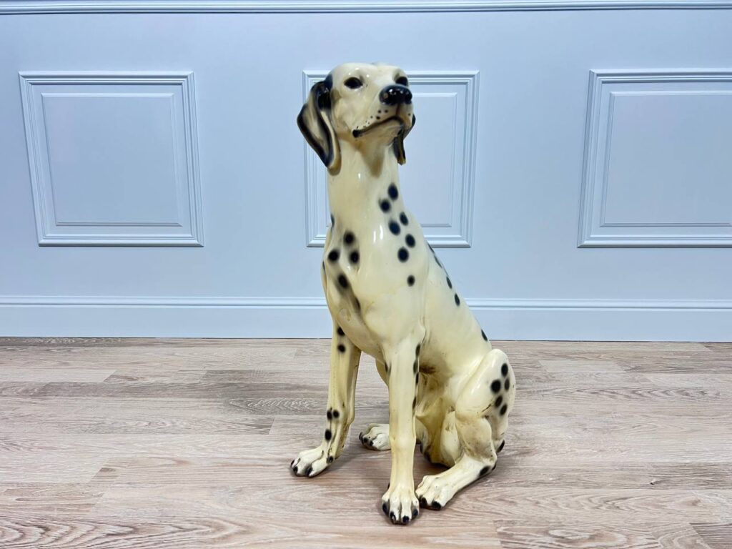 Антикварна керамічна скульптура далматина в натуральному розмірі. Інтерʼєрна декоративна фігура, яка детально відтворює анатомічні деталі собаки, а розпис ще більше підкреслює живість та натуралістичність образу. Скульптура буде неймовірним доповненням інтерʼєру.