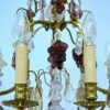 Рідкісна антикварна люстра з серії „Фруктовий сад“, виготовлена традиційним способом італійськими майстрами-склярами острова Мурано. Каркас люстри виготовлений з золоченої бронзи, на якому гармонійно поєднуються обʼємні елементи з прозорого кришталю та розміщені у декілька ярусів підвіски з кольорового муранського скла у формі кристалів, крапель та фруктів, зокрема майстерно виконані грона винограду, плоди груші та яблука. Люстра оснащена шістьма патронами у вигляді свічок під цоколь Е27. Неймовірний предмет, що чудово прикрасить будь-який інтер’єр.