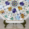 Елегантна підставка під гарячий посуд виготовлена ​​в техніці флорентійської мозаїки (pietra dura) – вишуканої італійської художньої техніки, яка полягає в інкрустації напівдорогоцінним камінням мармуру. Ця унікальна модель гармонійно поєднує в собі мармур, нефрит, лазурит, яшму та агат, створюючи декоративну прекрасну композицію. Рідкісний декоративний предмет, ідеально підійде для подачі гарячих страв.