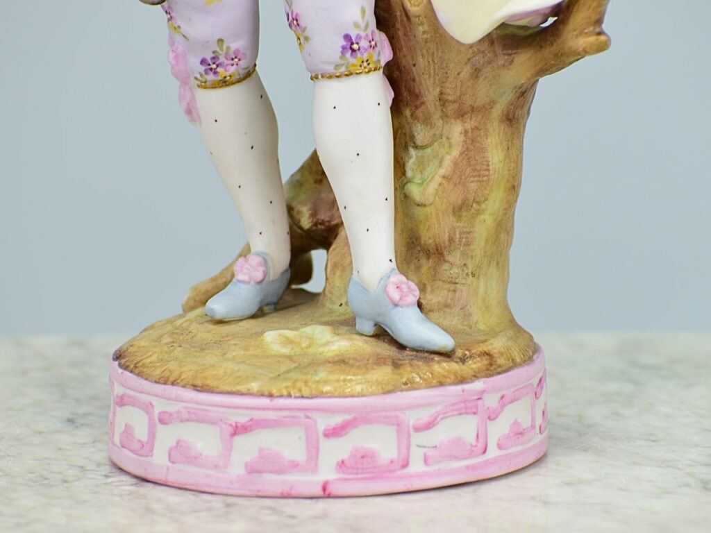 Порцелянова статуетка садівника виробництва німецької дрезденської фабрики. Фігурка розписана по неглазурованому бісквіту. Виключна деталізація, манера розпису та композиція фігури повторюють знамениту Майсенську порцелянову пластику. На дні присутнє ручне маркування Дрездена відповідно до 20-50-х років XX століття. Порцеляна у прекрасному стані.