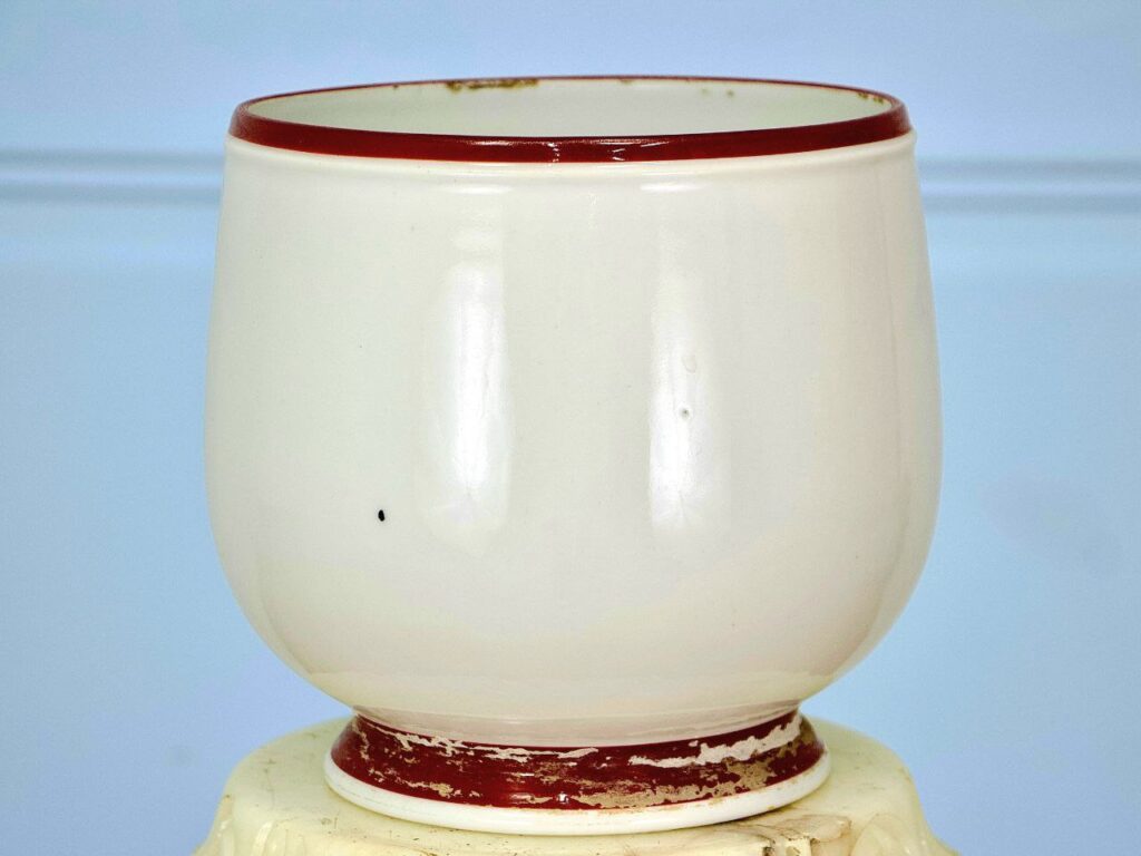 Антикварне порцелянове кашпо, оздоблене ручним розписом. На предметі зображений пейзаж з невеликим будиночком у лісі біля річки. Кашпо французького виробництва з ліможського білосніжного каоліну, розписане невідомим майстром, ймовірно, в одному з паризьких ательє. У хорошому антикварному стані.