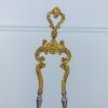 Gorgeous antique fireplace maintenance set with incredible bronze fittings. The set includes a tool rack, firewood tongs and an ash shovel. Beautiful bronze gilt decor adorns the handles of the items.