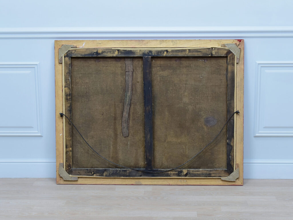 Антикварний живопис створений за мотивами відомого полотна Фелікса Анрі Еммануеля Філіппото (Félix Henri Emmanuel Philippoteaux), яке зберігається в музеї Французької армії (Париж). Твір зберігає колористику та композицію оригіналу. На полотні зображено пораненого солдата французької армії з хлопчиком-військовим музикантом на тлі зимового пейзажу після битви. У нижньому правому кутку – підпис виконавця Willewald B.