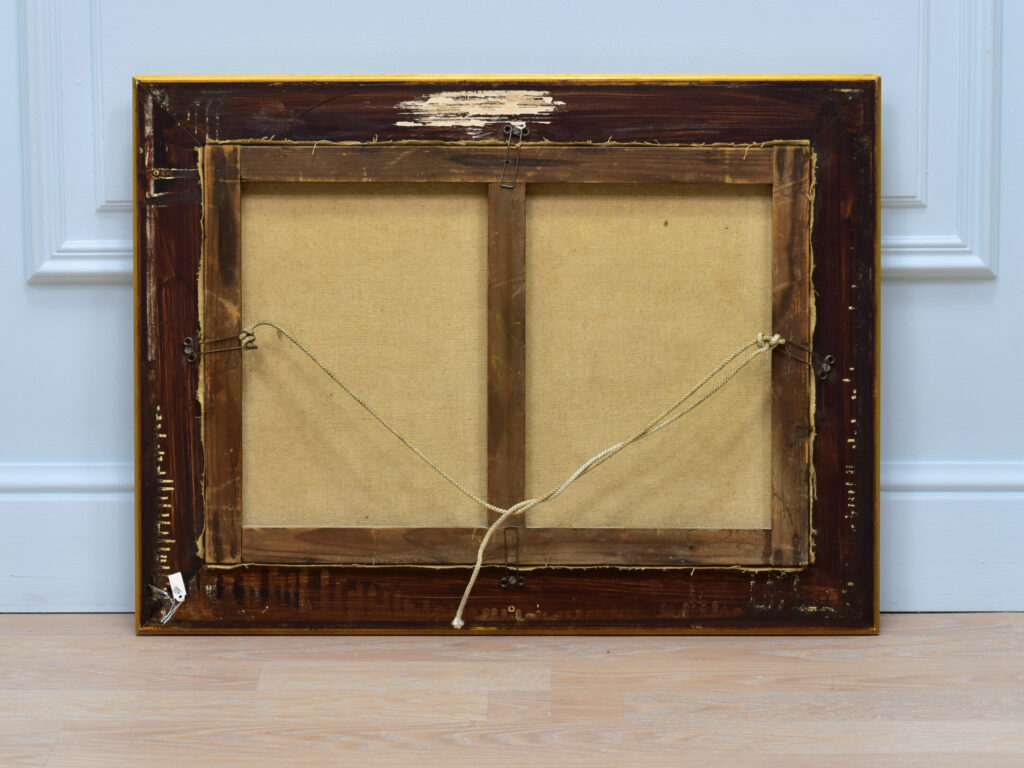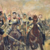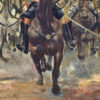 Антикварний живопис із зображенням батальної сцени. Динамічна композиція зображає атаку важкої кавалерії на чолі з офіцером. Живопис вирізняє жива, дещо імпресіоністична манера виконання. Картина обрамлена в лаконічну багетну раму.