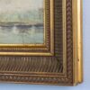 Антикварний живопис з пейзажним сюжетом, який зображає русло річки посеред міста. Зліва пришвартовані кораблі, а на задньому плані арковий міст через річку. Живопис відрізняється тонким колоритом та прекрасно переданою просторовістю. У правому кутку підпис автора. Живопис обрамлений у дерев’яну раму з лаконічним декором.