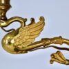 Оригінальна класична вінтажна настільна лампа Bouillotte. Основа виготовлена з масиву золоченої бронзи в стилі ампір, з характерними для цього стилю тримачами плафонів у вигляді трьох лебедів. Абажур виготовлений з зеленого листового металу з декором у вигляді рослинного орнаменту та кракелюру. Абажур регулюється по висоті. Предмет декору для класичного кабінету, вітальні або спальні.