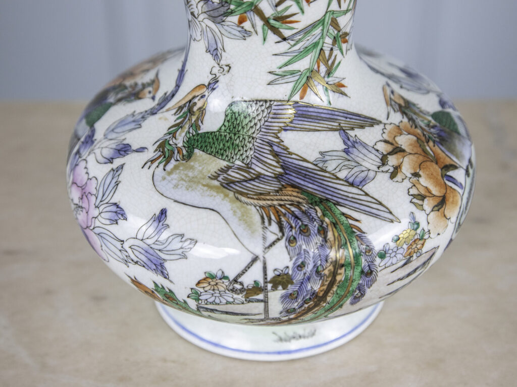 Антикварна ваза виготовлена в техніці поліхромного надглазурного розпису на порцеляні. Ваза розписана в традиційному стилі XVIII століття, який був популярний за правління імператора Цяньлуна (Qianlong). Поверхню прикрашають зображення фазанів і квітів, глазур має віковий кракелюр.