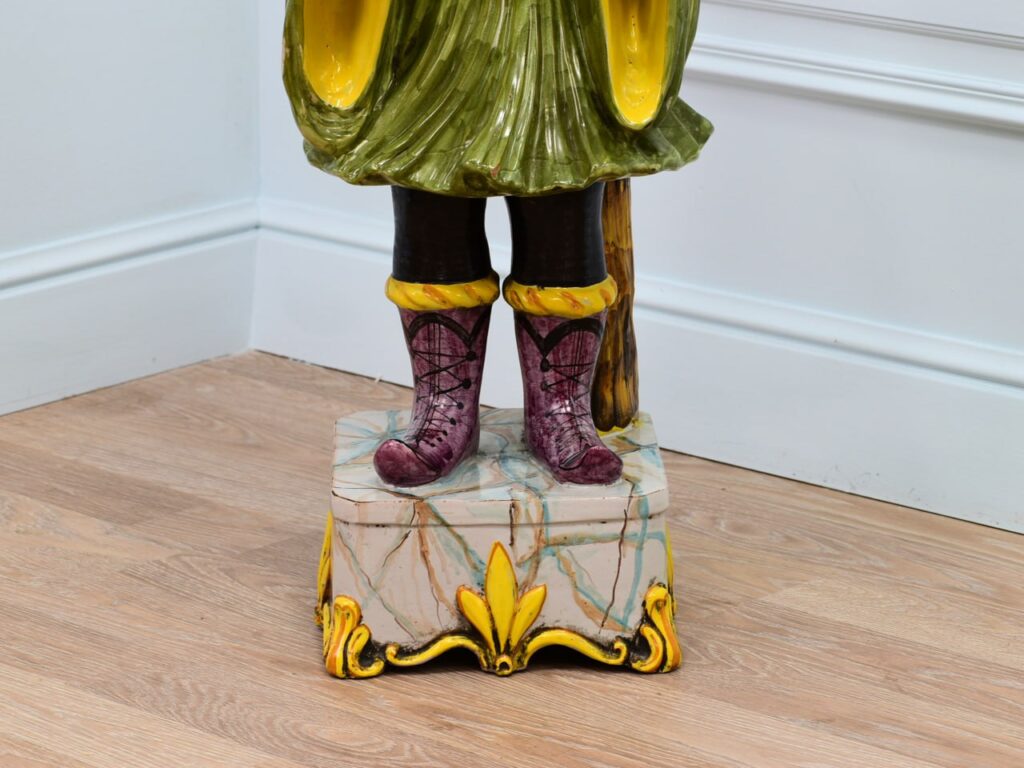 Вінтажна скульптура мавра-слуги. Предмет виготовлений з високоякісної кераміки з використанням традиційного ручного розпису у техніці майоліка з глазуруванням, що характерно для мавританського стилю. Цей цікавий та незвичайний предмет додасть екзотичного шарму інтер’єру.