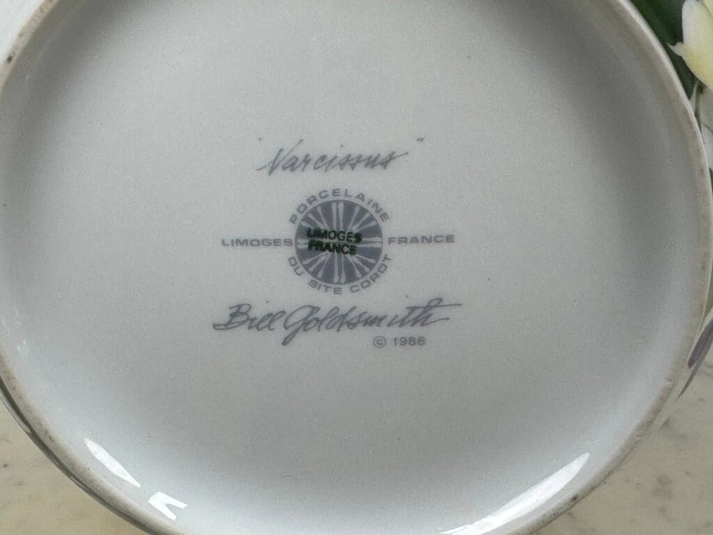 Вінтажна ваза з відомої серії Narcissus Flowers Colorful від Victoria Bill Goldsmith. Ваза виготовлена ліможською порцеляновою фабрикою Коро у 1986 році. Серія Flowers Colorful відрізняється яскравим декором з великих весняних квітів, які розкидані по основі предмета у вигляді букетів. На дні є клеймо виробника. Ваза в хорошому стані.
