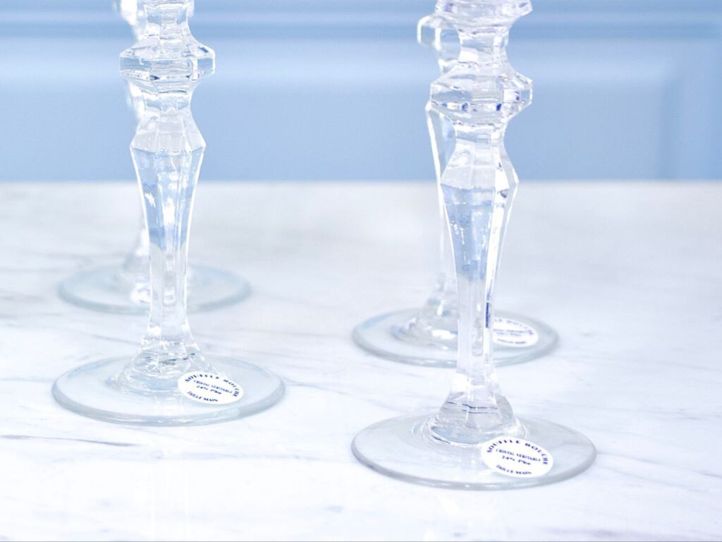 Елегантний набір вінтажних келихів з гранованого кришталю ручної роботи. На кожному виробі вигравіювано назву та логотип бренду. Комплект розрахований на 6 персон та представлений в оригінальному кейсі з внутрішнім шовковим оздобленням синього кольору. Універсальний за стилістикою та призначенням набір чудово підійде для подачі ігристого вина та шампанського.