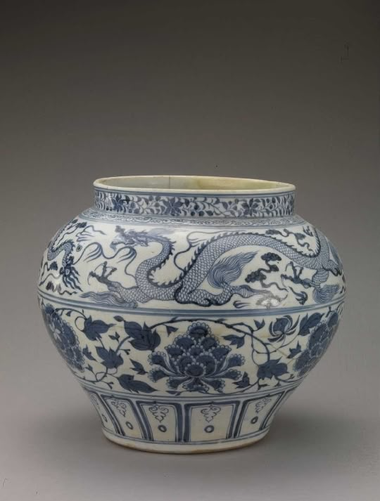 Самыми древними найденными на сегодняшний день сине-белыми изделиями являются храмовые вазы 1351 года. Они демонстрируют мастерство, свидетельствующее о том, что техника подглазурной росписи была хорошо развита в то время, вероятно, возникла во второй четверти 14 века.