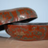 Антикварная шкатулка в форме четырехлистника, украшенная в технике красного лака и дополненная растительной росписью. Китайская лаковая традиция восходит еще к средневековью, она совершенствовалась на протяжении веков, лаковые предметы были желанными в императорском дворце. Во время Ост-Индской кампании декоративные изделия Востока приобрели большую популярность в европейских странах, именно таким образом в XIX веке во Францию попало немало азиатской продукции. Шкатулка в хорошем антикварном состоянии, соответствующем ее возрасту.