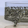 Антикварная изысканная ваза станет украшением сервировки стола. Емкость из прозрачного стекла помещена в металлическую оправу невероятной красоты, которая имеет вид рельефного узора, изображающего нежные цветы.