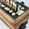 Традиционный французский антикварный аккордеон Флютина, которому более 150 лет. Корпус изготовлен из массива красного дерева со змеевидными боковыми стенками, которые декорированы инкрустированным золотым дизайном в виде цветочной лозы, что характерно для стиля Буль (Boulle). Инструмент оснащен клавиатурой, украшенной накладками из натурального перламутра, и гармонью с оригинальной цветной бумагой, которая блестит при разворачивании. На аккордеоне есть табличка с именем мастера J. Delmotte и адресом магазина 1 Passage du Grand Cerf Paris. Предмет в хорошем состоянии.
