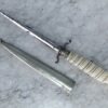 Изысканной работы антикварный дамский стилет, известный как «кинжал добродетели», который дамы носили с собой для самозащиты. Предмет имеет клинок со стальным перекрестьем и оловянной гардой, деликатно обработанную рукоять из слоновой кости. Кинжал в комплекте с никелированными ножнами, которые очень плотно прилегают к лезвию и предназначены для скрытого ношения, идеально — в женской подвязке.
