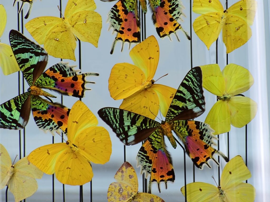 Невероятный экспонат для энтомологической коллекции или украшения интерьера. Авторская композиция из бабочек трех видов — Anteos maerula, Urania ripheus и Phoebis Rurina. Бабочки оформлены в антикварную отреставрированную колбу начала ХХ века. Яркие цвета желто-оранжевых оттенков в сочетании с особенно выразительными бабочками вида Urania ripheus.